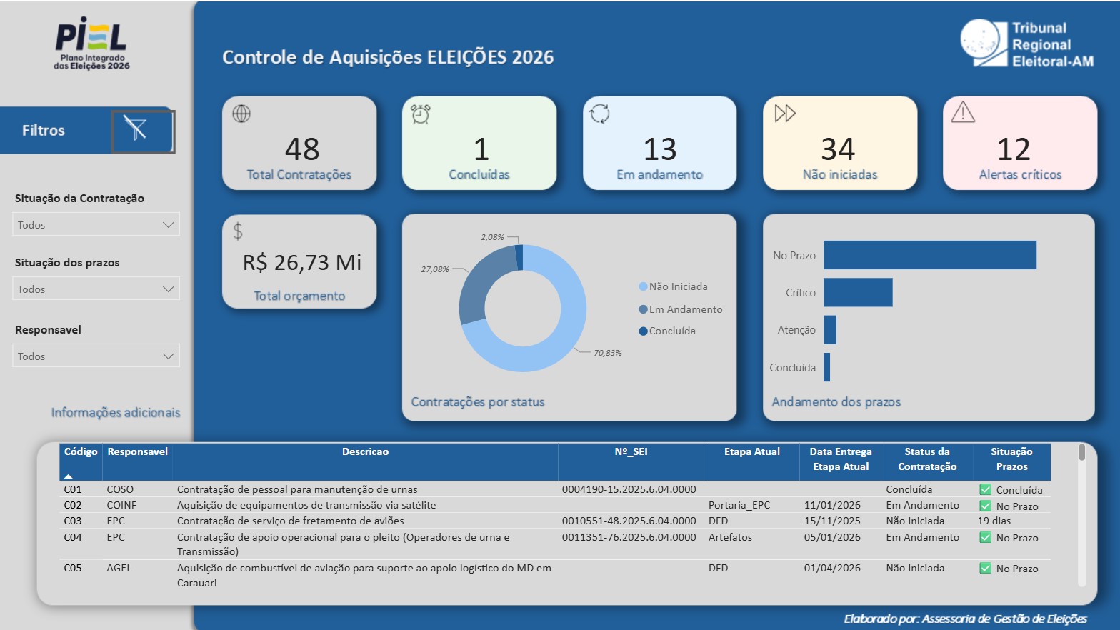TRE-AM torna público Plano de Aquisições para as Eleições de 2026Ferramenta amplia transparência e permite acompanhamento integral das contratações para o próximo pleitohttps://www.tre-am.jus.br/administracao/destaques/tre-am-torna-publico-plano-de-aquisicoes-para-as-eleicoes-de-2026https://www.tre-am.jus.br/@@site-logo/logo.jpg