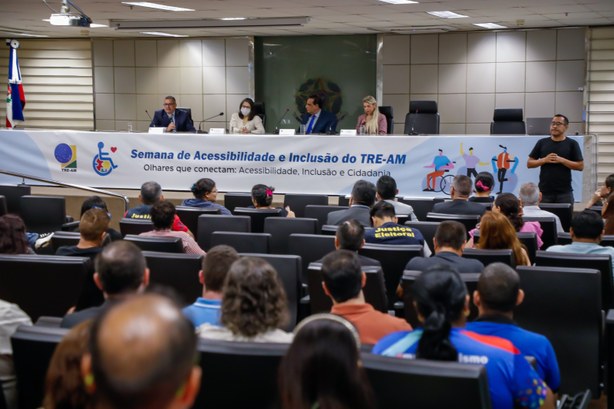 Com foco na inclusão e no respeito à diversidade, o Tribunal Regional Eleitoral do Amazonas (TRE-AM) iniciou, nesta terça-feira (11/06), a Semana de Acessibilidade e Inclusão “Olhares que Conectam: Acessibilidade, Inclusão e Cidadania”, realizada no auditório do Fórum Eleitoral, no Aleixo. A programação inclui palestras voltadas à conscientização sobre a participação plena de pessoas com deficiência nos espaços públicos e institucionais.